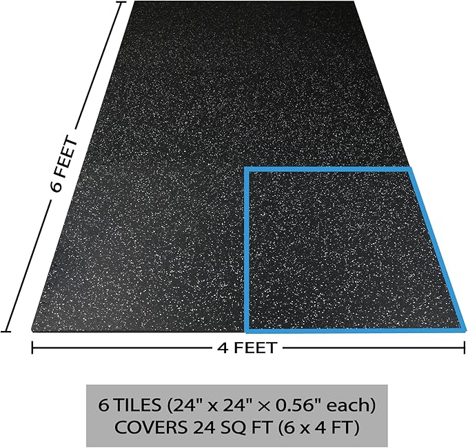 0.56 Inch Thick 24 Sq Ft Gym Flooring 6 Tiles