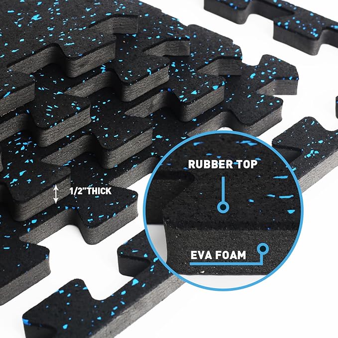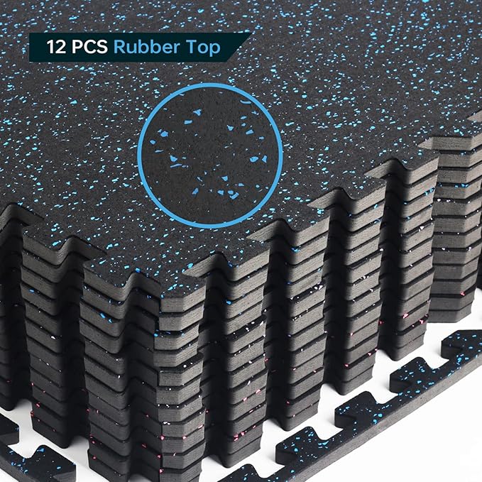 - Rubber Top - Better Choice for Home Gym: You will like the rubber top because the common EVA foam mats are too soft or flimsy for your home gym and all rubber fitness mats were too expensive. This double-layer mat is the perfect solution for working out at home, you will get the softness and affordability of the EVA foam with the sturdiness of the rubber layer on top