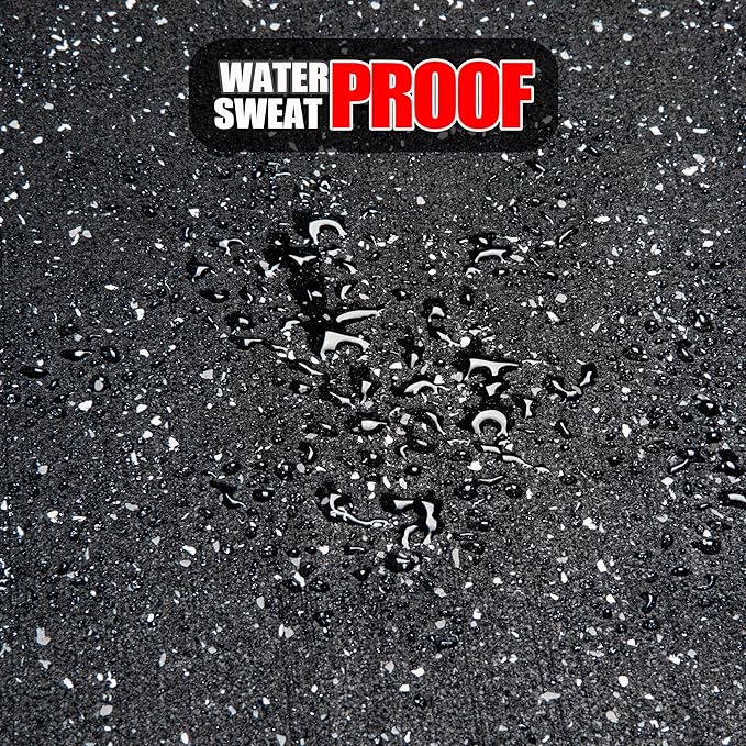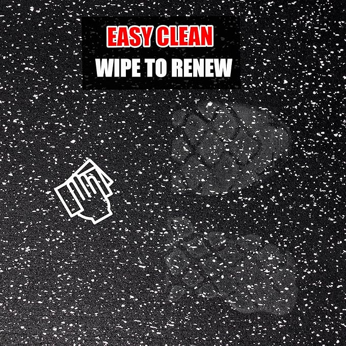 - WATERPROOF & SWEAT-RESISTANT - The top of the ABBER home gym equipment mat is made of high-quality EPDM rubber, which has waterproof and sweat-resistant features, and is also easy to clean. Apply warm water and dish soap with a soft cloth or towel and air dry. Moreover, the EPDM rubber layer also has anti-slip properties, which can keep your fitness equipment firmly on the floor, and help you protect your floor and carpet from intense exercise and sweat spillage