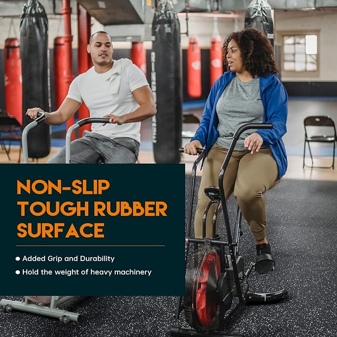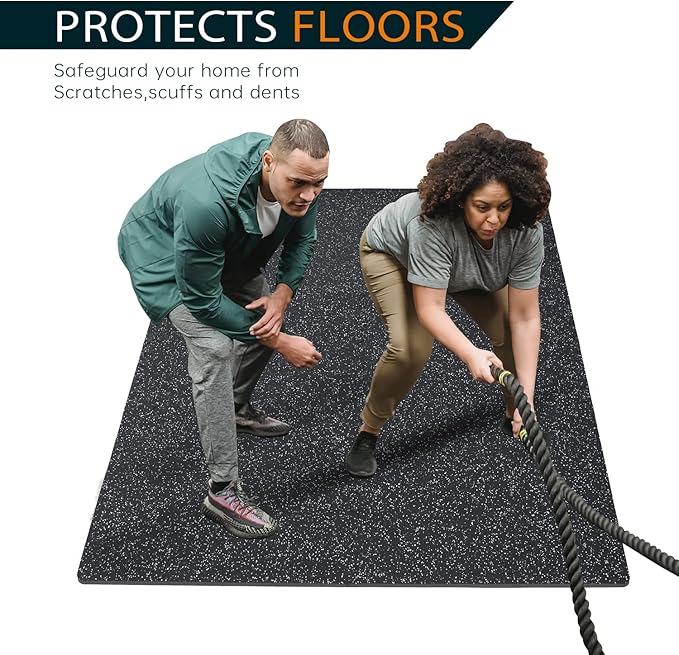 - 💪 【Premium Rubber Surface 】 Our gym mats are made of high quality recycled rubber that is created to withstand heavy use. Rubber tiles are tough and strong Can easily hold the weight of heavy machinery for all of your needs. The mats safeguard your floor from scratches, scuffs and dents that can occur in a home gym from weights and dumbbells, medicine balls, jump ropes and more.