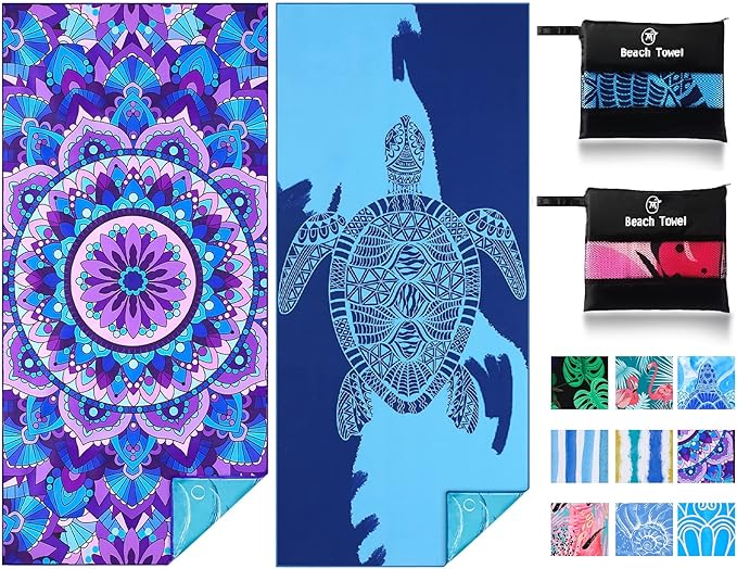 - Sand Free and Super Absorbent : Super soft, the beach towel instantly absorbs water when it touches the water.Whether you are on holiday at the beach or swimming pool ,it will bring you a comfortable feeling.Our beach towels are sand free and can be kept clean at any time