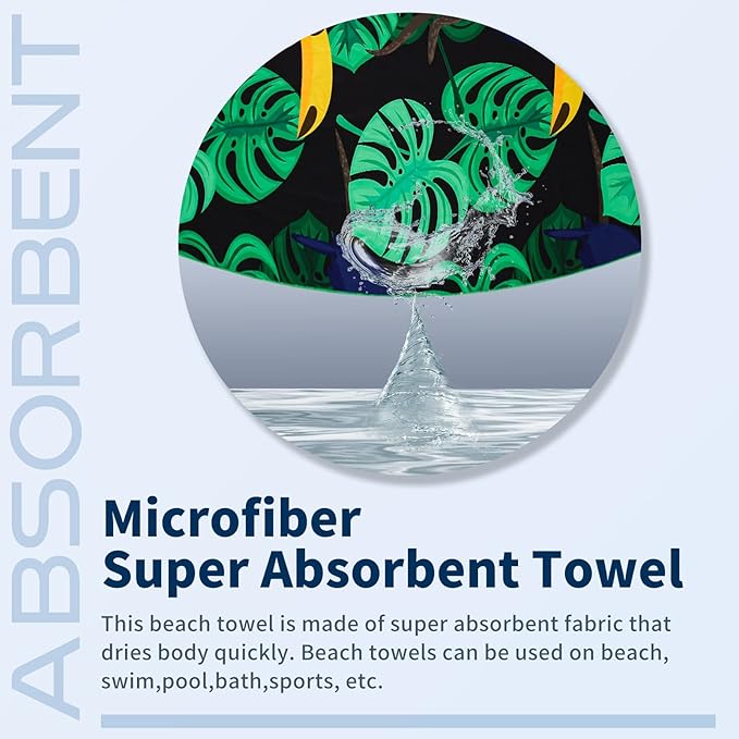 - Sand Free and Super Absorbent : Super soft, the beach towel instantly absorbs water when it touches the water.Whether you are on holiday at the beach or swimming pool ,it will bring you a comfortable feeling.Our beach towels are sand free and can be kept clean at any time