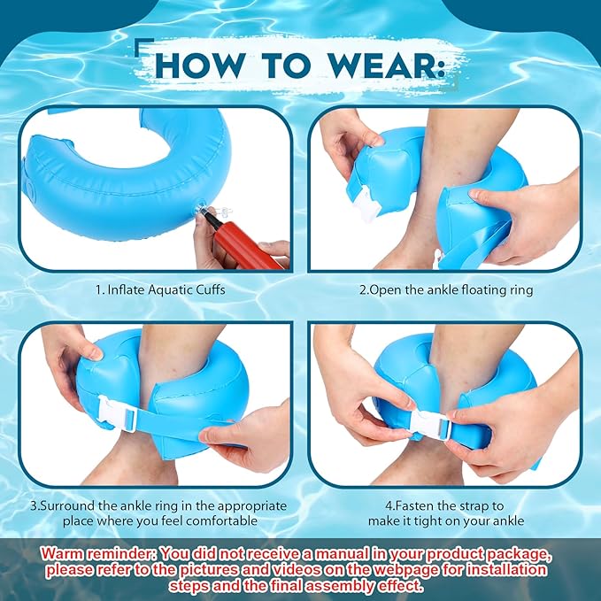 - Enjoyable Water Exercise Kit: includes 2 pieces inflatable PVC swim aquatic cuffs equipments to help boost your water training; Fasten or remove these water aerobics float rings easily with the quick release and detachable nylon buckle; More importantly, you can adjust these aquatic fitness accessories to fit your arm or ankle size for a more comfortable using experience