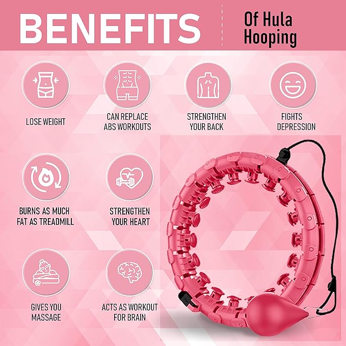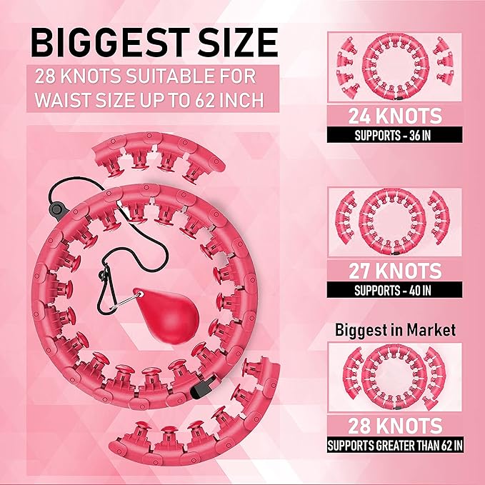 - [Detachable design and plus size suitable] Get rid of the need to buy two waist hula hoop because we are introducing 28knots detachable knots infinity hoop, that is suitable for plus size adults and supports up to 62 inches waist size.