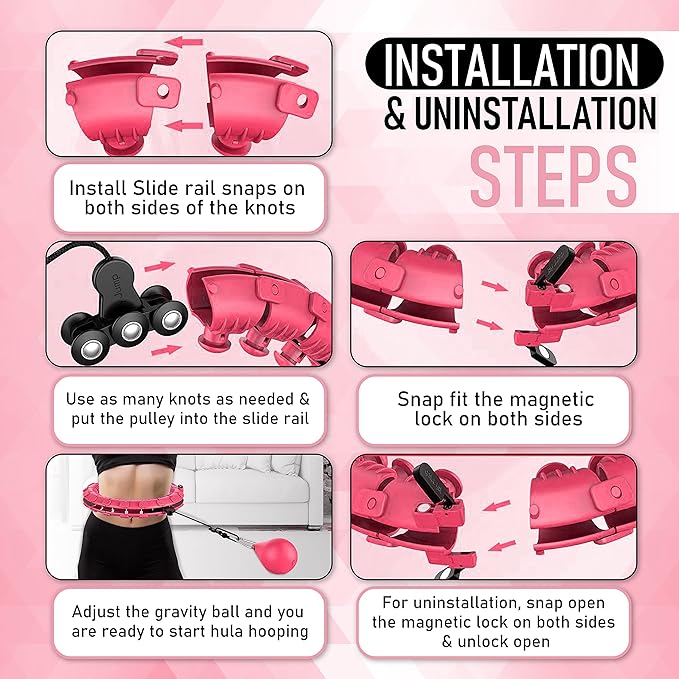 - [Upgraded Never Fall Design] Unlike older traditional hula circle hoop, this new design infinity hula hoop is easy to use for even kids and beginners. It comes with magnetic lock to hold the fitness hula hoop in place. Using this hula circle allows body to burn fat and get rid of fatigue along with massaging your waist. It is a great weight loss ring for women.