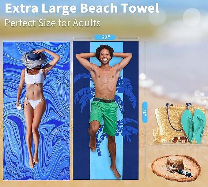 - Sand Free and Super Absorbent : Super soft, the beach towel instantly absorbs water when it touches the water.Whether you are on holiday at the beach or swimming pool ,it will bring you a comfortable feeling.Our beach towels are sand free and can be kept clean at any time