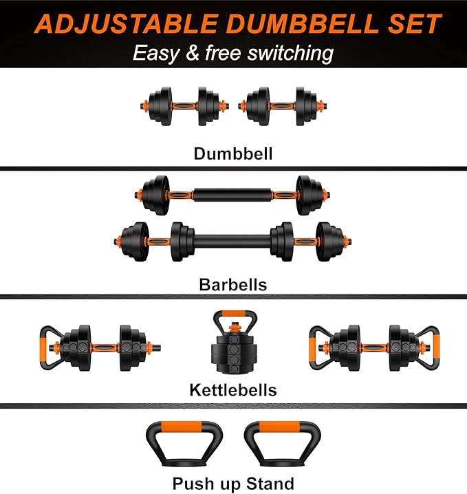 44LB Adjustable Dumbbelsll Set of 2 4 in 1, Barbell