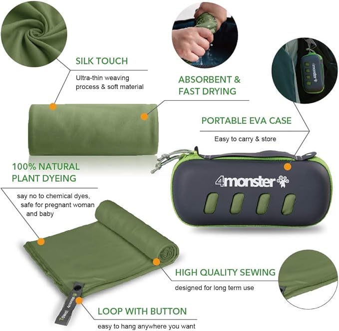 4Monster Camping Towel Super Absorbent-Quick Dry Microfiber Towel