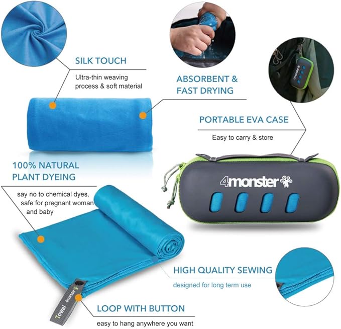 4Monster Camping Towel Super Absorbent-Quick Dry Microfiber Towel