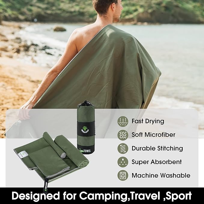 - 【3 Towels at 1 Pack】The package contains 3 towels of different sizes, (S:15''x15'') is a small hand towel and prefect for gym and yoga class,light and soft, absorb sweat quicker than you imagine.(M:30''x15'') is a prefect camping towel and you’ll find the size just designed for traveling.(L:60''x30''),the biggest towel in the package,the size is for shower,beach and pool,large yet light and portable.