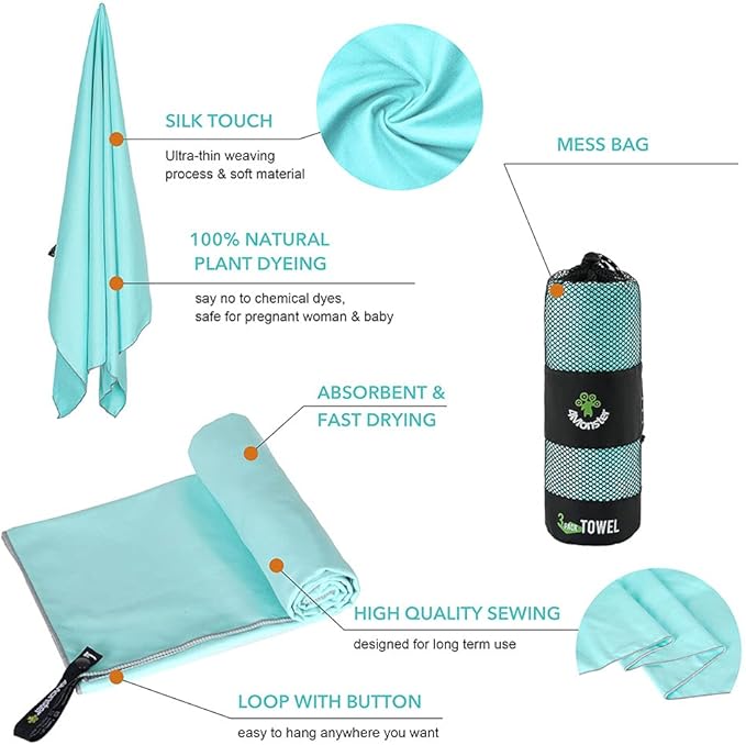 - 【3 Towels at 1 Pack】The package contains 3 towels of different sizes, (S:15''x15'') is a small hand towel and prefect for gym and yoga class,light and soft, absorb sweat quicker than you imagine.(M:30''x15'') is a prefect camping towel and you’ll find the size just designed for traveling.(L:60''x30''),the biggest towel in the package,the size is for shower,beach and pool,large yet light and portable.