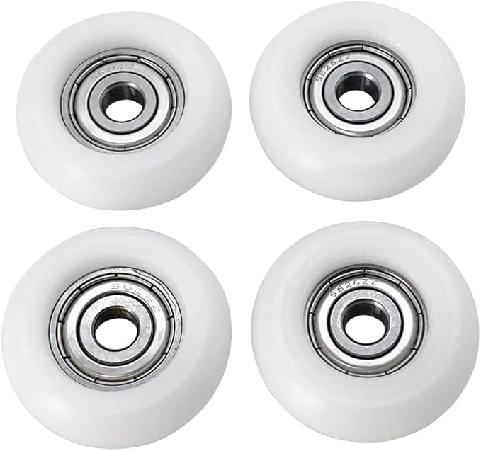 - Size: The bearings have a through-hole diameter of approximately 1/4"(M6). The outer diameter and the inner diameter of the wheel (Plastic part) are 1.25" and 0.75". PLEASE check whether the product size meets your needs before buying.