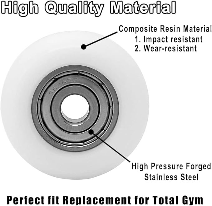 - Fitment: Upgraded Set of 4 Rollers Replacement for Total Gym Wheels/Roller, Gym replacement wheel kit fits for all fitness room models 2000, 3000, 3000 XL and some early XL.