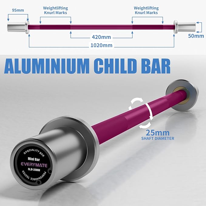 • Ergonomic Design: Don't be fooled by its size! Everymate mini barbell bar is designed to deliver significant effects. Its ergonomic design ensures a comfortable grip and impeccable balance for every lift. Weight distribution along the mini bar ensures stability and control during lifts, allowing women, children and beginners to focus on correct form and technique for a variety of training activities