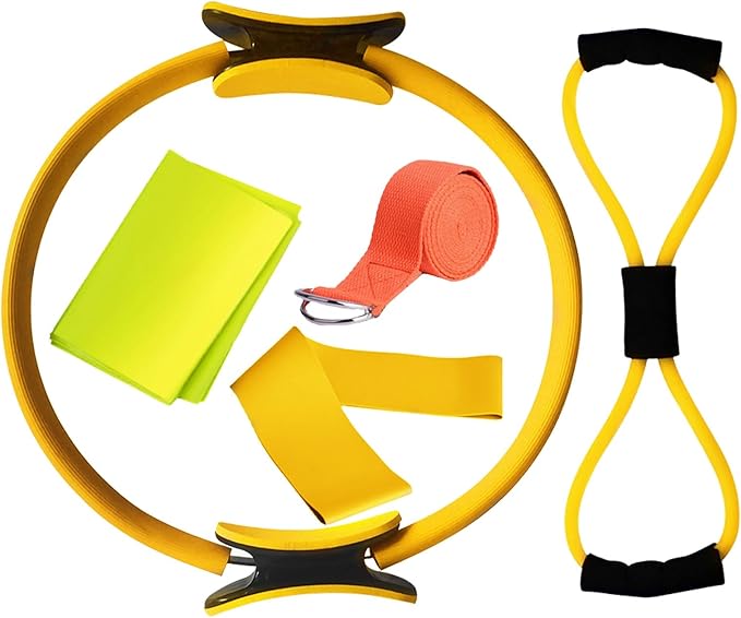 - PRODUCTS INCLUDED: Pilates ring, latex elastic band, yoga rally strap, pull rope, 8-shaped resistance bands for arms.