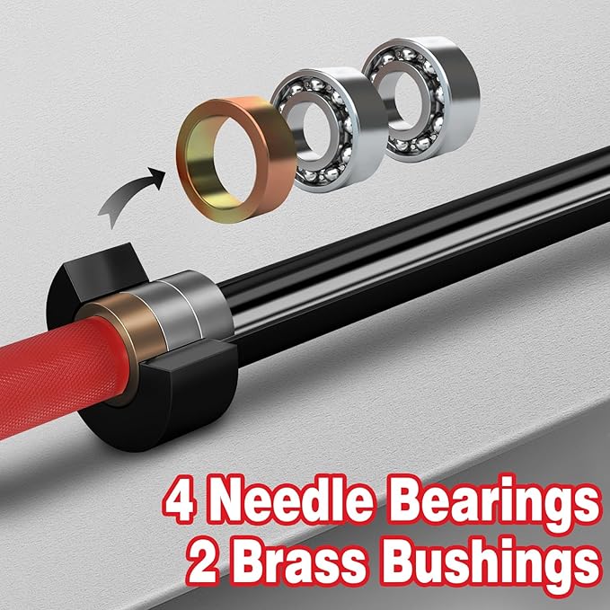 • Excellent Bearing Rotation System: Featuring high-quality bearing rotation system, this barbell delivers exceptional rotation for fluid and stable lifts. The low-friction design minimizes wrist stress and enhances movement efficiency, making it perfect for explosive and dynamic exercises.