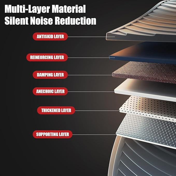 - 【Silent Noise Reduction】Multi layer material mute noise reduction. Anti skid layer, reinforcement layer, damping layer, noise reduction layer, support layer.Silencing silo design, built in strong spring, automatic springback, comfortable and safe movement. Arc top design, multilayer materials, thickened load bearing structure.