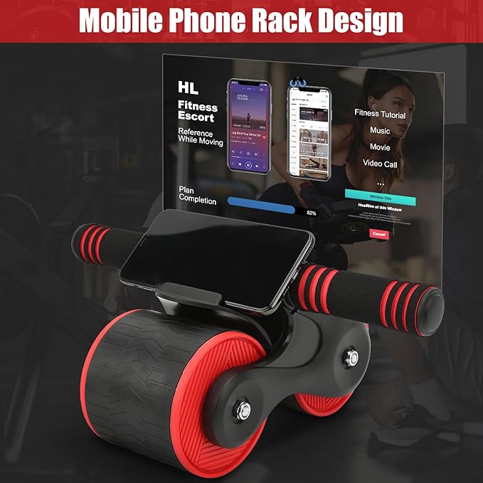 - 【Two Wheel Design】This roller adopts easy-sliding automatic rebound technology, double wheel design, automatic rebound function can protect you from injury during exercise, especially for beginners. The mobile phone holder function is convenient for you to exercise along with the teaching video.You can follow the teaching video for reference while exercising, or follow the drama, listen to music, and relax by video call.