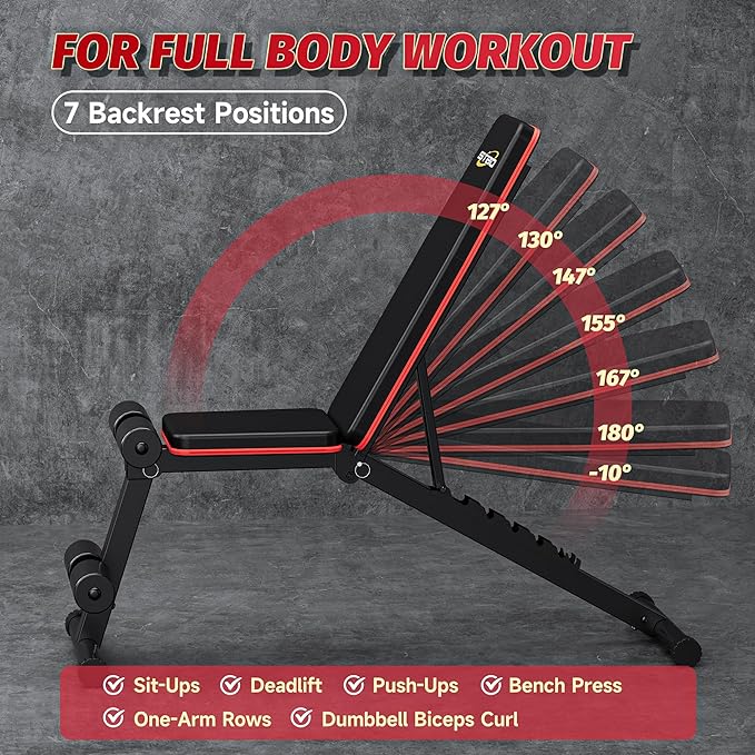 - 【VERSATILE DESIGN】The weight benches for home gym is a versatile piece of equipment that can be used for a variety of exercises, including chest presses, shoulder presses, bicep curls, tricep extensions, and more. It can also be used in combination with other equipment, such as dumbbells and resistance bands.