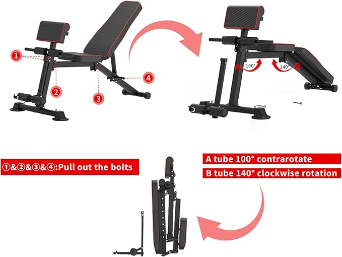 - 【FOLDABLE DESIGN】:This adjustable weight bench has a foldable design so it won't affect your living space.The Weight Bench is only 14.1 "wide and 37.4" long when folded.You could fold it up and place it in a corner or behind your sofa to save space after workout.