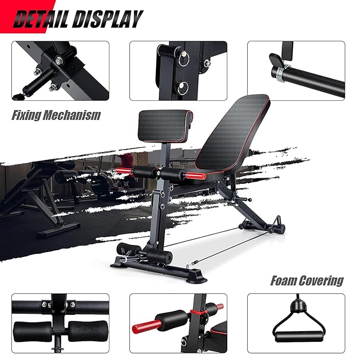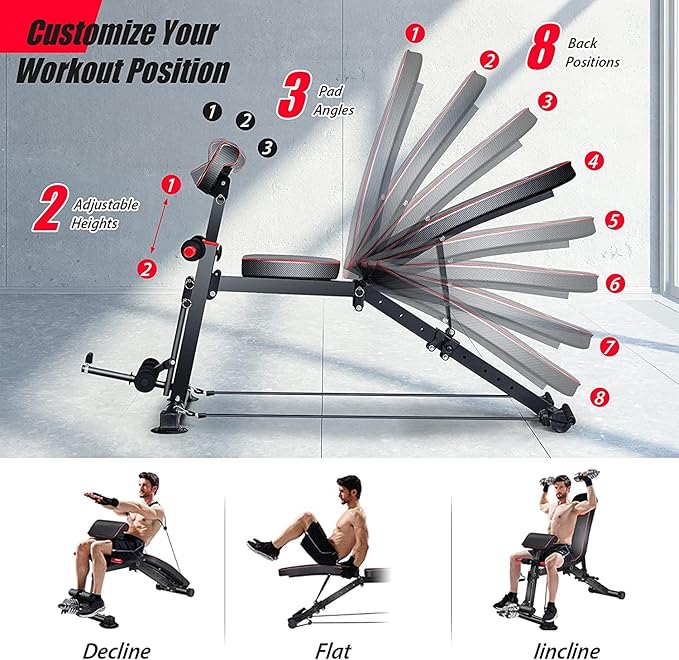 - 【FULL BODY WORKOUT】:The adjustable Weight Bench is ideal for Full-size adult Working out and Training on your Chest,Shoulder,Back,abs,leg and more.Just one weight bench can meet most of your fitness needs.