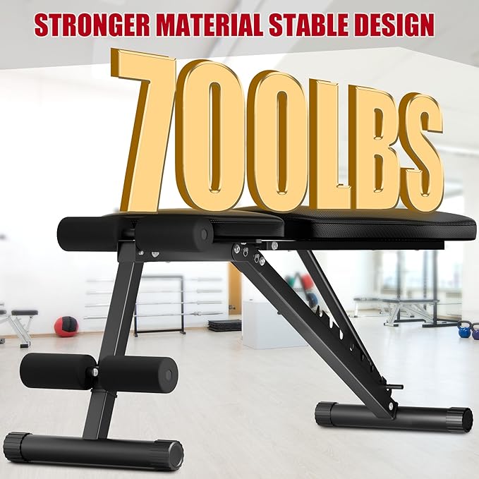 - 700 lbs Weight Capacity: Built with a sturdy and robust frame, this adjustbale weight bench can support up to 700 lbs. The high-quality materials and stable structure provide the necessary safety and support for all your workouts.