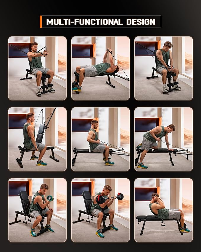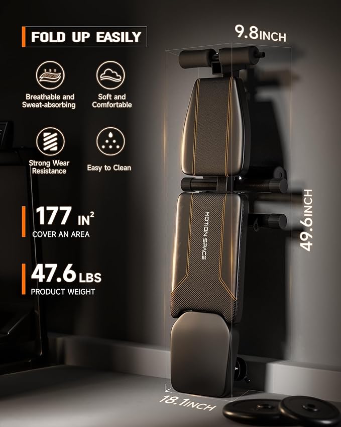 • 【Foldable and Compact】The Motion Space Multifunctional Fitness Bench can be easily folded, occupying minimal space and facilitating mobility and storage, allowing you to set up a home gym anytime, anywhere.