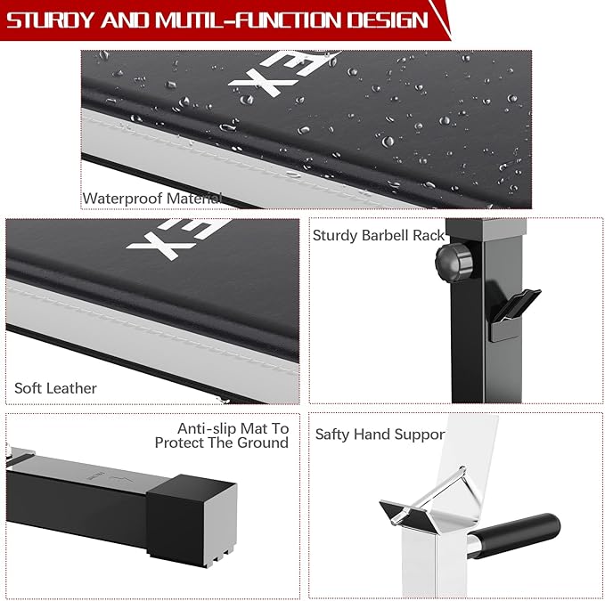 - 3.Safe and Stable:This weight bench comes with non-slip foot pads in the bottom of side legs, which could reduce noise, prevent scratches on the ground and improve stability.