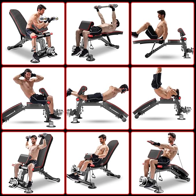 - ✅ADJUSTABLE WEIGHT BENCH : Adjustable weight bench has 7 backrest pad positions to meet all you need when workout. The adjustable weight rack is ideal for working out and training on your chest, shoulders, back, abs, and more for Home Gym.