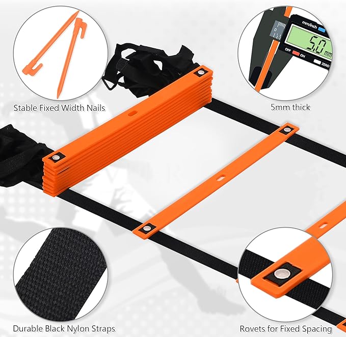 - Made from high quality material,our training ladder for footwork is built to withstand long-term use. Additionally, a built-in manual provides clear instructions for each accessory, ensuring they remain in top condition for extended use