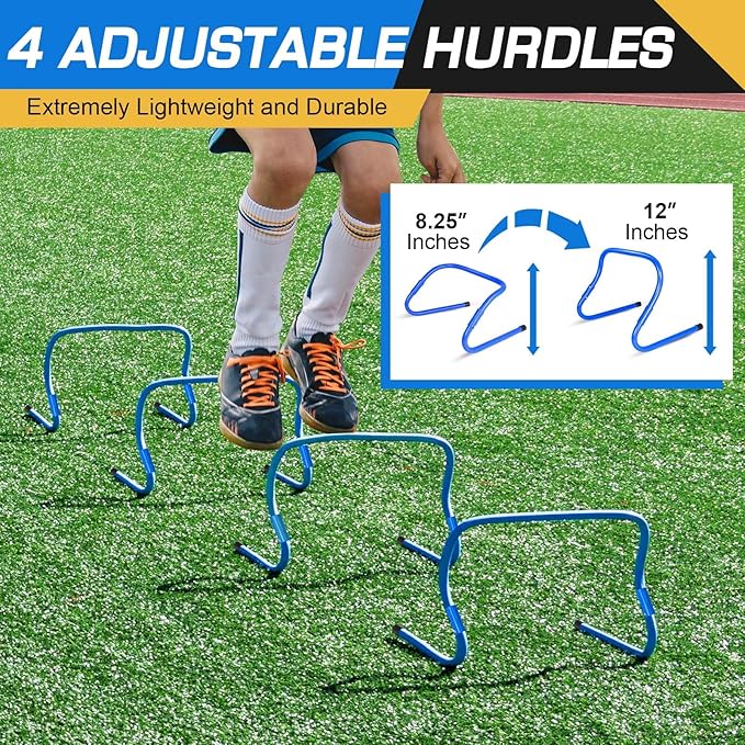 • 【Adjustable Agility Hurdles】These 4 agility hurdles have adjustable height settings, ensuring they can be used for a wide range of exercises and by athletes of all sizes. The versatility of these hurdles allows for a progressive training experience that grows with your skills.