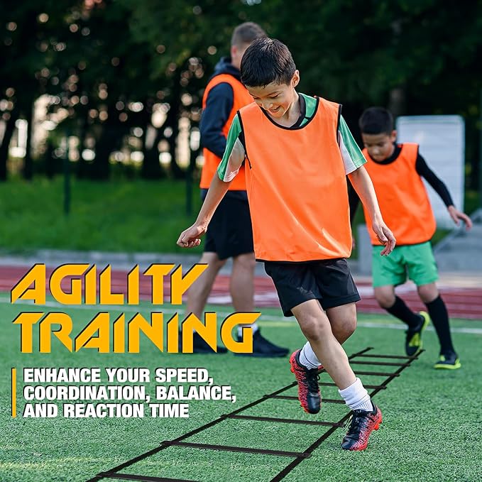 • 【Versatile and Fun】- Perfect for athletes of all levels, our training ladder is ideal for a wide range of sports and activities. From football to tennis, basketball to soccer, this set caters to all enthusiasts. Create engaging obstacle courses for kids and adults alike, making fitness fun for everyone.
