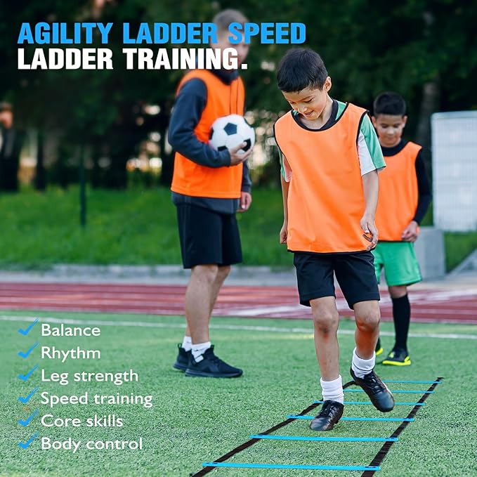 - 【Versatile Training for All Ages and Skill Levels】Perfect for kids, youth, adults, athletes, coaches, and fitness enthusiasts, this soccer football agility training equipment is adaptable to any training program. Improve leg strength, speed, and endurance while enhancing overall body agility and coordination. No matter your age or skill level, this set will challenge you to reach new heights.