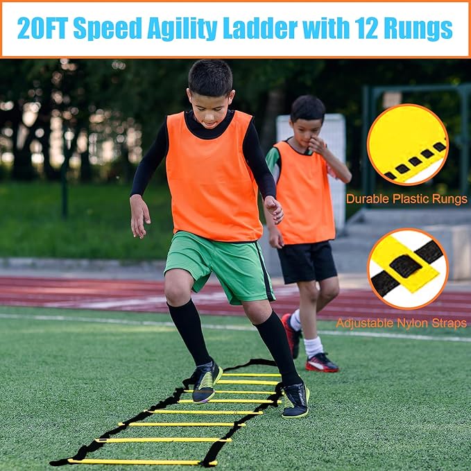 • Inspiring Potential&Healthy Movement - This speed and agility training equipment can not only effectively develop physical qualities such as speed, jumping, flexibility and agility, but also cultivate the will qualities of bravery, tenacity, decisiveness and overcoming difficulties. Suitable for coaches, football players, basketball players, soccer players, tennis players, athletes of all sorts and fitness enthusiasts.