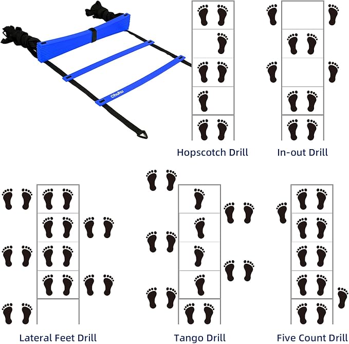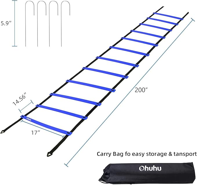Agility Ladder Speed Training Set: Ohuhu 12 Rung 20ft Soccer 12 Cones, 4 Steel