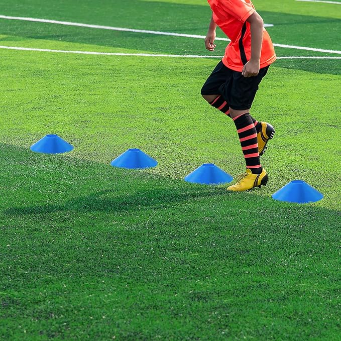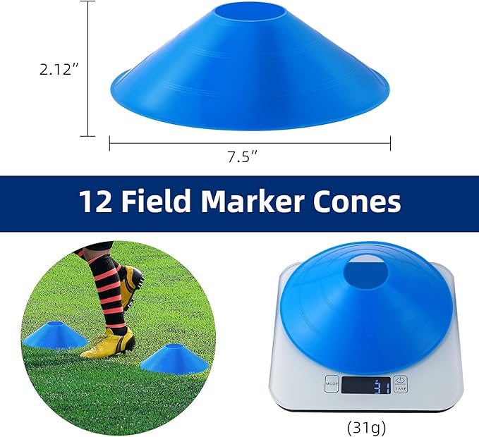 - INCLUDES 12 SOCCER CONES: Use the 12 included football cones in the Ohuhu football training equipment set (12 blue, with UV protection) for a variety of exercises. They can be easily seen in any conditions thanks to the bright colors.