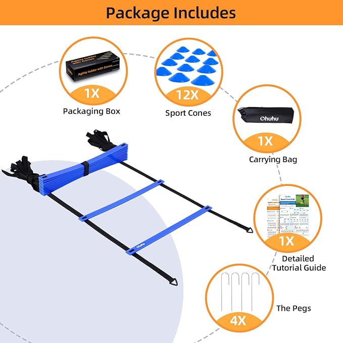 Agility Ladder Speed Training Set: Ohuhu 12 Rung 20ft Soccer 12 Cones, 4 Steel