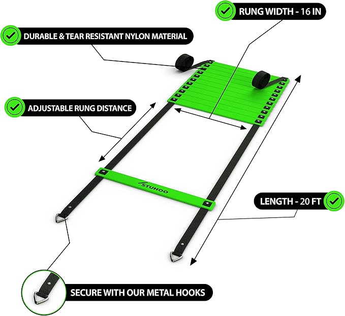 - 【With STUHOO, age is just a number】: STUHOO’s soccer training equipment for kids, youth, professional athletes or beginners, coaches, sports players, & adults; whether you are a soccer player, basketball, tennis, cricket, or baseball player our agility ladder training equipment set is ideal for improving speed, balance, agility, enhancing coordination, footwork, & explosiveness