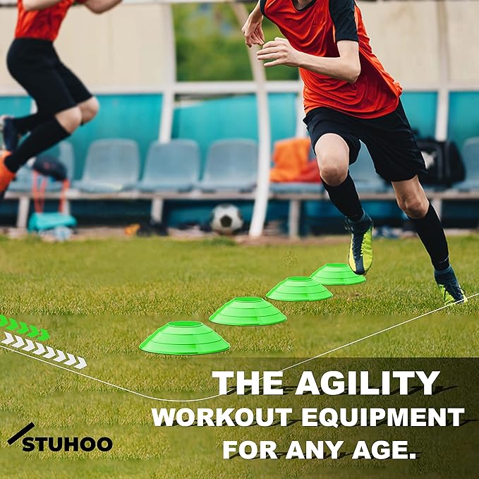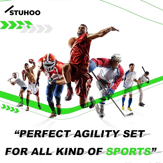 • 【Versatile Utility with 100% Satisfaction】: Use our football training equipment set to improve speed, explosiveness, agility, footwork to be efficient in trainings; kids agility equipment can be used to make fun training obstacles for children; STUHOO provides 100% satisfaction & active support to its customer; in case of any query reach out to the customer support