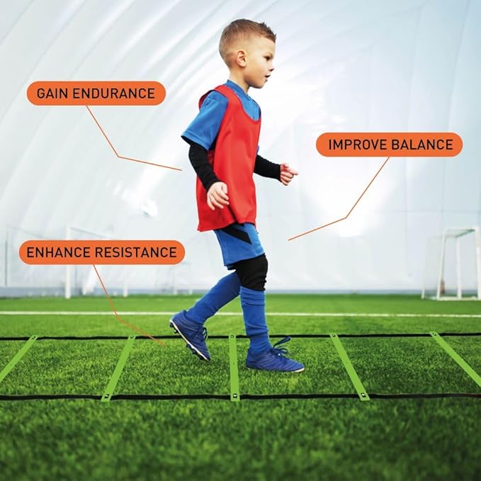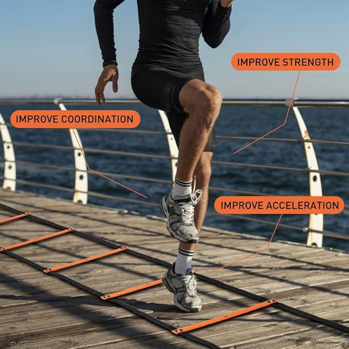 - Elevate Your Game with Athletivi's Premium Football Training Set! Includes an 18ft fixed-rung ladder, 10 agility cones, a running parachute, resistance bands, and more. Perfect for pros, beginners, kids, and anyone looking to improve speed, agility, and coordination.