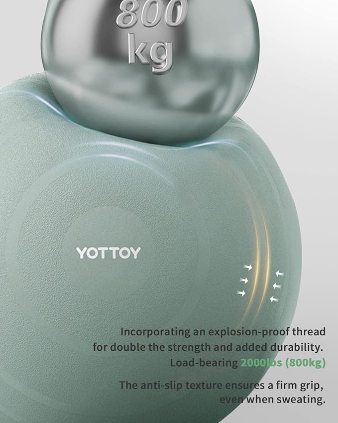 - Our workout balls for exercise features a surface design that is exclusive to our YOTTOY brand, incorporating an explosion-proof thread for double the strength and added durability. Additionally, we have improved the anti-slip texture to ensure a strong grip, even when sweating. With its sturdy construction, you can trust that our fit ball won't pop out during your workouts. Elevate your yoga practice today with our top-of-the-line sitting ball!