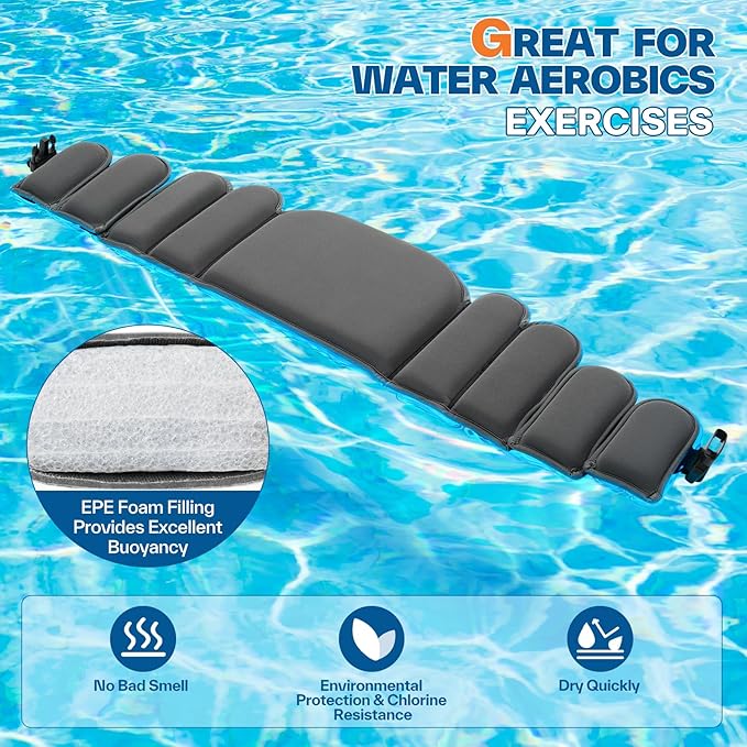 • Low-Impact Workout: Use low-impact water exercises to keep you healthy and relieve stress. The aqua belt for pool exercise is great for all aquatic exercise, such as aquatic classes, water physical therapy, pool exercise, underwater fitness, water Zumba, water aerobics, and recovery training.