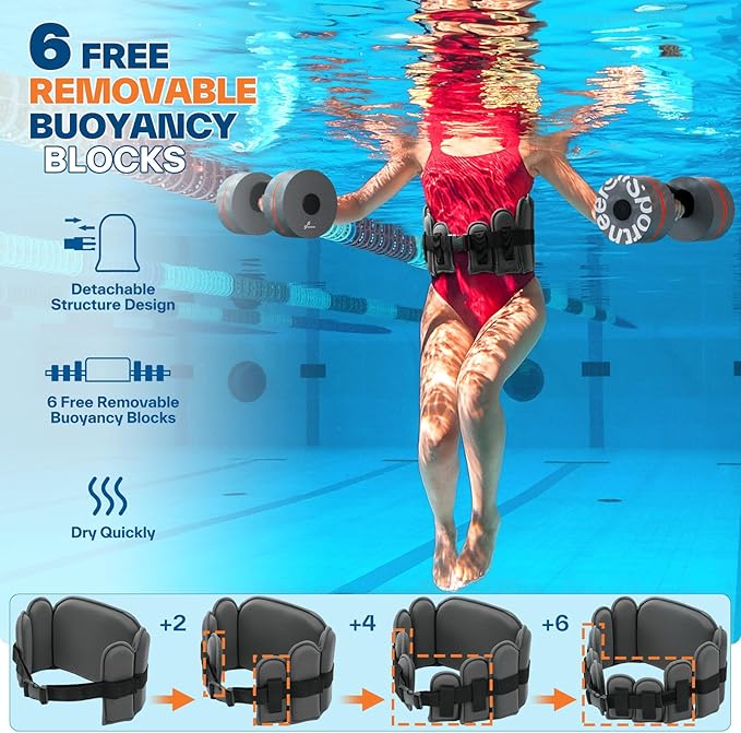 - Low-Impact Workout: Use low-impact water exercises to keep you healthy and relieve stress. The aqua belt for pool exercise is great for all aquatic exercise, such as aquatic classes, water physical therapy, pool exercise, underwater fitness, water Zumba, water aerobics, and recovery training.