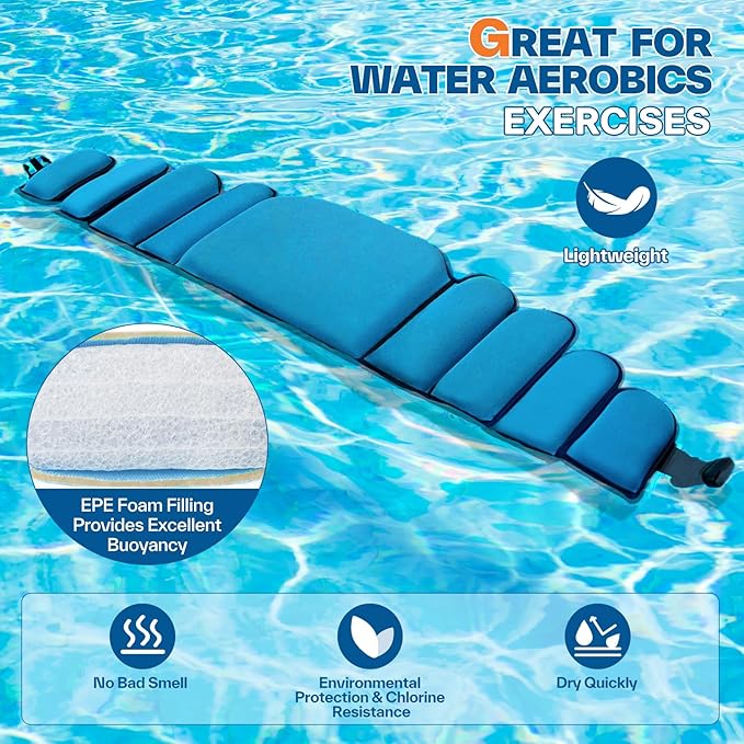 - Low-Impact Workout: Use low-impact water exercises to keep you healthy and relieve stress. The aqua belt for pool exercise is great for all aquatic exercise, such as aquatic classes, water physical therapy, pool exercise, underwater fitness, water Zumba, water aerobics, and recovery training.