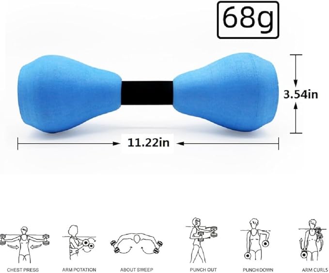 - Enhance Your Water Workout: These high-quality EVA foam fitness dumbbells are perfect for aquatic exercise, water aerobics, and pool resistance training. Made of lightweight and waterproof material, they provide floating support and help strengthen your upper body muscles. No fading and safe to use in water, they are ideal for water fitness enthusiasts