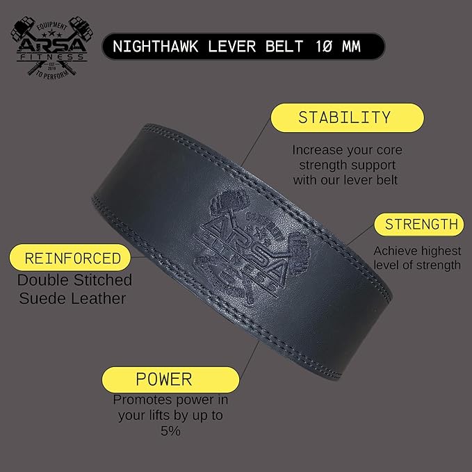 - THE PREMIUM 10MM THICK GENUINE LEATHER BELT YOU NEED: This Arsa Fitness power lifting lever belt features 10mm thick belt, with ample support for any lifter. This weightlifting belt will provide you with the highest amount of back support while maintaining your posture, and keeping your lifts at their maximum potential!.