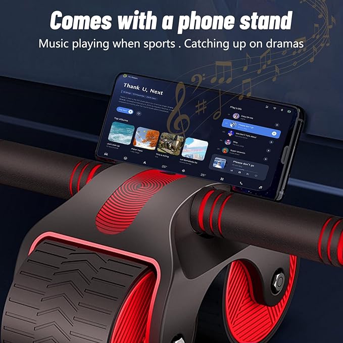 - 【Cell Phone Stand Makes Workout More Comfortable】The fitness roller is equipped with a cell phone stand, allowing you to easily watch your desired fitness tutorials or music during your workout. The arch structure disperses pressure and the tank-style dual-wheel design is more stable than the single-wheel design, making it easier for you to complete long workouts and reducing the risk of injury.