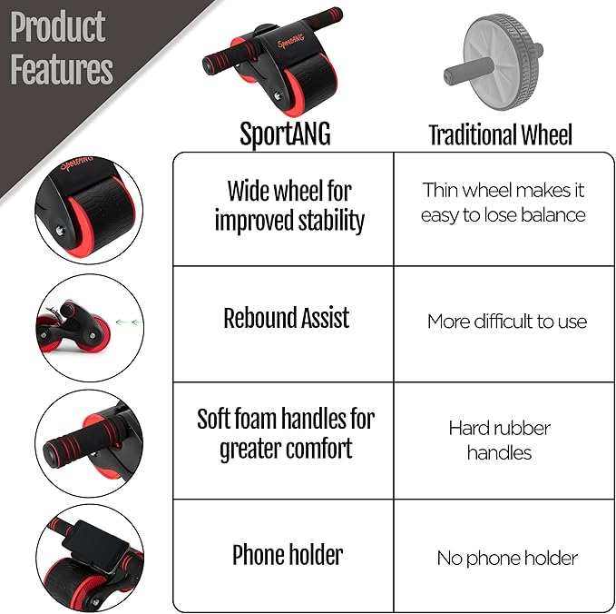 - AUTOMATIC REBOUND ABDOMINAL WHEEL: The SPORTANG abdominal wheel is designed with a system that allows for smoother and controlled abdominal wheel exercises, while providing an automatic rebound that aids in returning after a full exercise extension.
