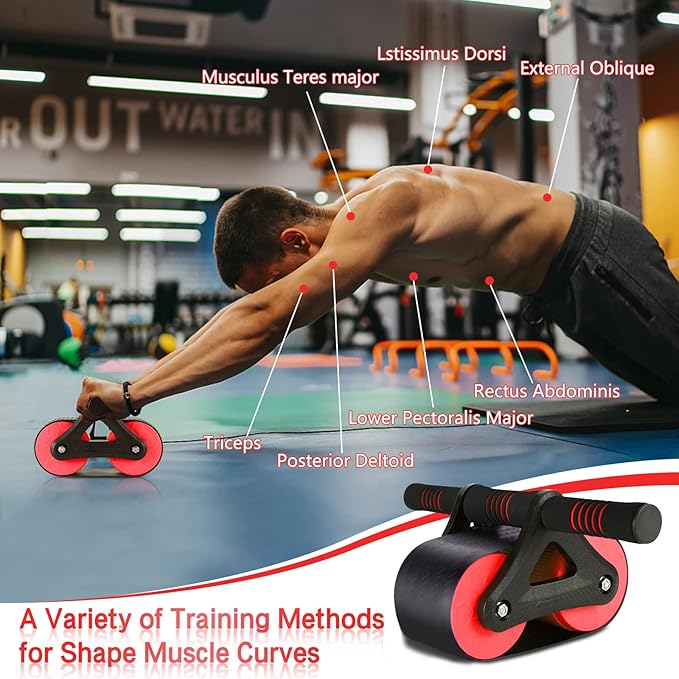 • 💪 Automatic Rebound Abdominal Wheel ---- Our ab roller wheel uses automatic rebound technology to help you smoothly roll and maintain control. Crawler automatic rebound double wheel belly wheel, as one of the essential gym accessories to fine tune your six pack, this roller is a great tool to work on attractive, defined lines with precision, training charming abdominal muscles .
