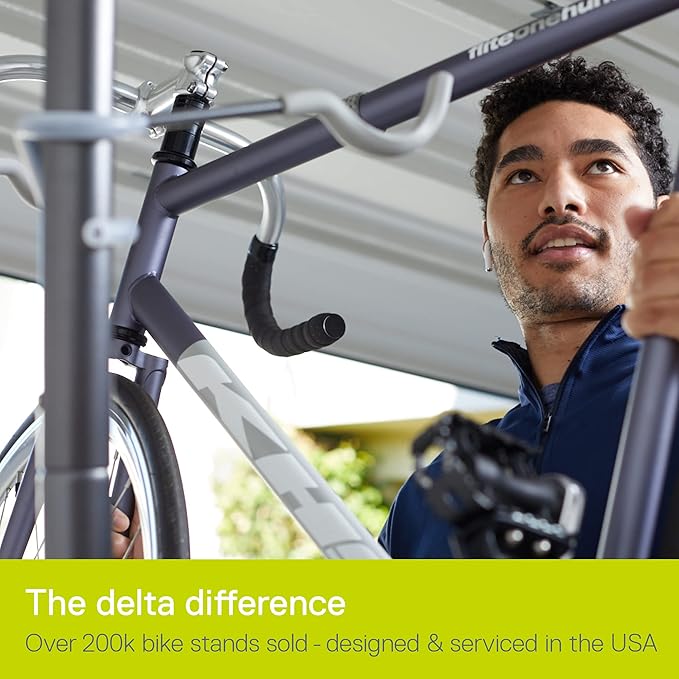 Delta Cycle Michelangelo 2 Bike Storage Rack - Gravity Fully Adjustable Bike Rack Garage For Road, MTB, and Hybrid Bicycles - Vertical Bike Rack Holds Up To 80 lbs